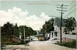 Route 215 begins as Groton Long Point Road at an intersection with US 1 in south central Groton. It heads southeast towards Noank, passing by Haley Farm State Park along the way. At the entrance to Groton Long Point, Route 215 turns east following South Elm Street into the village of Noank. After passing through the center of the village, Route 215 turns north past Beebe Cove along Elm Street then proceeds northeast following Noank Road towards West Mystic. Route 215 ends at an intersection with US 1 on the west bank of the mouth of the Mystic River near Mystic Harbor.[1]