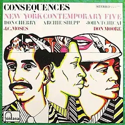 Consequences is the debut album by the New York Contemporary Five featuring saxophonists Archie Shepp and John Tchicai, trumpeter Don Cherry, bassist Don Moore and drummer J. C. Moses. The album was released on the Fontana label in 1966.[1] In 2020, the Ezz-thetics label re-released the material from Consequences, along with the three NYCF tracks from the B side of Bill Dixon 7-tette/Archie Shepp and the New York Contemporary 5, on a remastered compilation CD titled Consequences Revisited.[2]