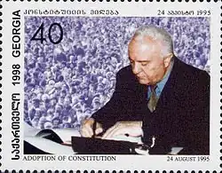 The Constitution of Georgia (Georgian: საქართველოს კონსტიტუცია, sakartvelos k'onst'it'utsia) is the supreme law of the nation of Georgia. It was approved by the Parliament of Georgia on 24 August 1995 and entered into force on 17 October 1995. The Constitution replaced the Decree on State Power of November 1992 which had functioned as an interim basic law following the dissolution of the Soviet Union.