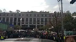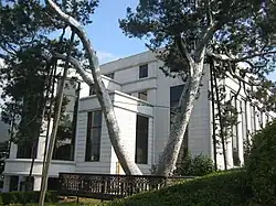 The Constitutional Court of Korea is located in Jae-dong, Jongno District, Seoul, near Anguk station on Seoul Subway Line 3. The court comprises the courthouse and an annex. The five-story main courthouse, completed in 1993, is designed in a Neoclassical style that blends Korean tradition with modern technology. It was awarded first place in the second Korean Architecture Award in October 1993.[24] The right pillar of the main gate bears the inscription 헌법재판소, meaning the Constitutional Court, while the left pillar gate is inscribed 헌법재판소 사무처, meaning the Department of Court Administration.