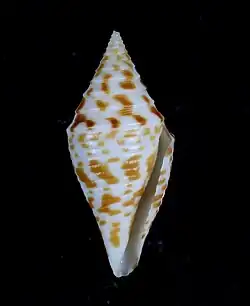 This is a variable species, yet two distinct forms are recognized: (1) sowerbii form, Reeve, 1849 (a thicker, darker, and more densely spotted form with 2 protoconch whorls), and (2) aliguay form, Olivera & Biggs, 2010 (2.5 pearly white smooth protoconch whorls, more slender, higher spire, rounded shoulders, lighter colored).[4] The sowerbii form is the most common form, and until the late 1990s was the only form typically found and in private collections.