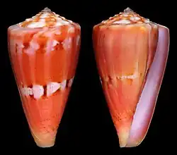 - Puillandre, N.; Duda, T.F.; Meyer, C.; Olivera, B.M.; Bouchet, P. (2015). "One, four or 100 genera? A new classification of the cone snails". Journal of Molluscan Studies. 81 (1): 1–23. doi:10.1093/mollus/eyu055. PMC 4541476. PMID 26300576.