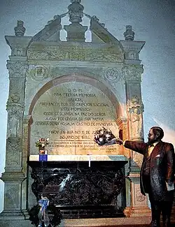 The monastery church in a side chapel houses the Pantheon of Illustrious Galicians, in Galician Panteón de Galegos Ilustres, where the remains of several key Galician cultural and political personalities such as writers: Rosalia de Castro, Alfredo Brañas, Ramón Cabanillas, the intellectual and cartographer Domingo Fontan, the sculptor Francisco Asorey, The last person buried in this mausoleum is the politician, writer and artist Alfonso Daniel Rodríguez Castelao, and considered the father of modern Galician identity, resting there since 1984.