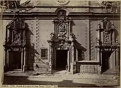 The church's facade and dome, both among the most outstanding works of Spanish courtly Baroque, were made by the José de Churriguera's sons: Jerónimo and Nicolás. The church's facade was monumental, distributed the access to the temple in three portals, features of the ornate style of the Churriguera family. The cour d'honneur, two-story, made by José Jiménez Donoso, was considered one of the best architectural works of the 17th century in Madrid. The church was heavily used by many Madrilenian co-fraternities. The Chapel of Santo Domingo in Soriano was well known, owned by Fernando de Fonseca Ruiz de Contreras, Marquis of la Lapilla. In the year 1726 the dome collapsed, killing about 80 people.