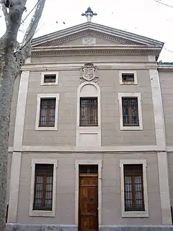The old convent was demolished in 1906 to make room for the construction of the New Cathedral.[3] The new convent was built from 1907 to 1909 under the direction of Fausto Íñiguez de Betolaza.[4] The neoclassical façade of the old convent, dating from 1783, was dismantled and rebuilt at the new site.[5] The convent has been vacant since 2007, when the last remaining nuns relocated to Valladolid.[6] A proposal was made in 2022 to turn the premises into a hospice,[7] but the plans were dropped in early 2024.[8]