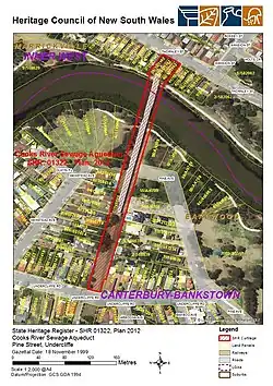 This Wikipedia article was originally based on Cooks River Sewage Aqueduct, entry number 01322 in the New South Wales State Heritage Register published by the State of New South Wales (Department of Planning and Environment) 2018 under CC-BY 4.0 licence, accessed on 2 June 2018.