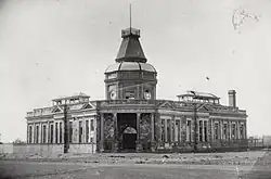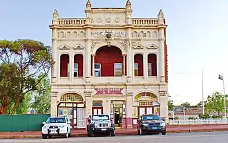 Coolgardie was founded in 1892, when gold was discovered in the area known as Fly Flat by prospectors Arthur Wellesley Bayley and William Ford.[5] Australia had seen several major gold rushes over the previous three decades, mostly centred on the east coast, but these had mostly been exhausted by the 1890s. With the discovery of a new goldfield, an entire new gold rush began, with thousands flocking to the area. The Municipality of Coolgardie was established in 1894. By 1898, Coolgardie was the third largest town in the colony, with an estimated population of 15,000[6] At its peak, 700 mining companies based in Coolgardie were registered with the London Stock Exchange. The town also supported a wide variety of businesses and services, including the railway connection between Perth and Kalgoorlie,[7] a swimming pool (first public baths in the state), many hotels and several newspapers.