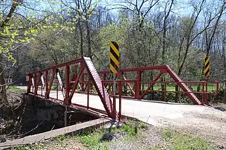 The Coon Creek Bridge is a historic bridge in rural western Benton County, Arkansas. The bridge carries County Road 24 (Coon Hollow Road) across Coon Creek between Decatur and the Oklahoma state line. It is a single-span Warren pony truss bridge, with a span of 57 feet (17 m), that rests on concrete abutments. It was built in 1930 and underwent major rehabilitation in 1975.[2]