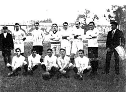 The Copa Centenario Revolución de Mayo was an international football tournament, held in Argentina from 29 May to 12 June 1910,[1] and organized by the Argentine Football Association.[2] It was the first international tournament in South America where more than two football nations participated.[3] The "Copa Centenario" is considered a predecessor to the South American Championship, later renamed "Copa América".[4]