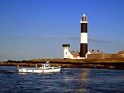 A light station was established on Lighthouse Island in the early 18th century and a lighthouse built in 1815. It has been inactive since 1884, when the lighthouse was abandoned in favour of the Mew Island Lighthouse, but the ruined stump of the 16 m (52 ft) stone tower remains. The ruins of the keeper's house have been rebuilt to house a bird observatory. The island is now owned by the National Trust and operated by the volunteer members of the Copeland Bird Observatory.[15]