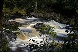 Copper Falls State Park is a state park in Ashland County, Wisconsin, United States. It contains a section of the Bad River and its tributary the Tylers Forks, which flow through a gorge and drop over several waterfalls. Old Copper complex peoples and later European settlers mined copper in the area. The state park was created in 1929 and amenities were developed by the Civilian Conservation Corps and the Works Progress Administration. In 2005, the park was listed on the National Register of Historic Places as a site with 10 contributing properties.[2]