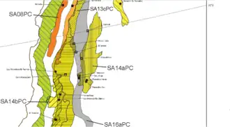 - ^ Piquer Romo, José Meulen; Yáñez, Gonzálo; Rivera, Orlando; Cooke, David (2019). "Long-lived crustal damage zones associated with fault intersections in the high Andes of Central Chile". Andean Geology. 46 (2): 223–239. doi:10.5027/andgeoV46n2-3108. Retrieved June 9, 2019.