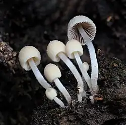 Coprinellus disseminatus, formerly known as Coprinus disseminatus and commonly known as the fairy inkcap,[1][2] fairy bonnet,[3] or trooping crumble cap,[4] is a species of agaric fungus in the family Psathyrellaceae. It can be found around dead wood in Europe and North America.