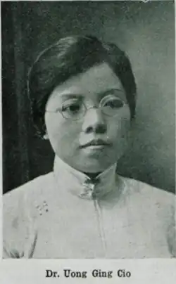 Coral Wong (1896–unknown), most commonly known as Coral Yuan[1] or Uong Ging Cio,[2] physician and religious missionary, was the medical superintendent of the Ningteh Hospital for the Church Missionary Society (CMS). Wong was one of the first females to be trained as a doctor by the CMS in China at the Hackett Medical College for Women. During her time at the Ningteh hospital, Wong pursued both medical and missionary work, built the maternity wing, and built accommodations for female staff, and engaged in evangelistic activities while fulfilling her duties as a physician.