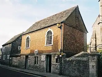 The National Trust runs a shop and a tearoom in the village,[11] both are Grade II listed buildings.[12][13] The Corfe Model Village, located on the village square, is a 1⁄20 scale model that shows what the castle and village would have looked like in 1646 before the castle was slighted.[14] Within the Church of St. Edward is an alabaster reredos inset with carvings in white marble, designed by the famous Victorian architect George Edmund Street R.A., which was presented by Lord Eldon in 1876.[15] A cross in the square commemorates Queen Victoria's Diamond Jubilee of 1897. Next to the cross is a defunct village pump, bearing the village's arms.[16] Mortons House Hotel, a Grade II* listed building, was built in 1590 and is one of the most notable buildings in the village.[17] Corfe Castle Town Hall, also Grade II listed, in West Street, was built in around 1774.[18]