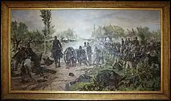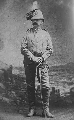 He took part in the Eritrean expedition of General Asinari di San Marzano to block any advance of Ethiopian troops after the defeat at Dogali.[12] Ponza di San Martino commanded the Cacciatori d'Africa and the 7th Bersaglieri Regiment before returning to Italy at the end of 1888.[4] During this campaign, Ponza was also commander of the Arkiko camp, established after reconnaissance he conducted together with a battalion of Cacciatori. He also carried out surveys of the mountains in the surroundings of the camp at the Takbat river, about 16km from Massawa.[13]: 108, 109, 117 [14] His sketches were sent to Quinto Cenni and reproduced by him in his illustrations of the campaign.[15] At the request of General Antonio Baldissera he reproduced the troop movements in the Battle of Segheneyti in a sketch which was sent to the Minister of War.[13]: 195, 198 Chief of Staff of the IX Army Corps in 1889, he was employed on a secret mission to Tunisia and Tripolitania in 1890 on the orders of Francesco Crispi to study the Ottoman defences and routes for a possible attack on the French border attack.[16][17]