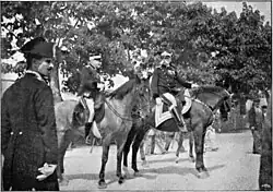 Ponza di San Martino supported the repressive policies of the First Pelloux government and tried first with Giuseppe Saracco (when he tried to get King Vittorio Emanuele III to approve the state of siege after the assassination of Umberto I)[19] and then with Giuseppe Zanardelli (in the case of the militarization of the railways) to bring forward a policy of "manu militari" repression of strikes while guaranteeing neutrality in disputes between workers and employers. At the time of his confirmation to the Ministry of War by Zanardelli , the newspaper L'Esercito italiano (organ of the offensivists and the "military left") expressed its support for him since he would guarantee the maintenance of the military budget with high levels of spending as well as the exclusion of the far left[20] from military policy issues. Hostile to the idea of an "armed nation" advocated by the Historical Far Left, he opposed in Parliament the granting of rifles from the arsenals to local shooting clubs, one of the "flagship" measures of the democratic coalition.[4]