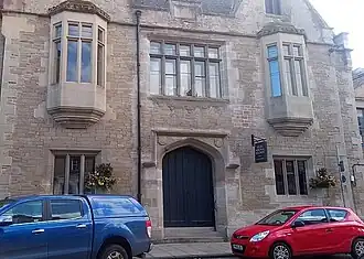 The foundation stone for the new building was in July 1855.[3] It was designed by David Cousin in the Jacobethan style, built in rubble masonry with ashlar stone dressings at a cost of £3,000 and was opened in 1856. The design involved a symmetrical main frontage of three bays facing onto Woodmarket. The central bay featured an arched doorway with an archivolt and a square hood mould on the ground floor and a five-part mullioned and transomed window on the first floor. The outer bays were fenestrated by tri-partite mullioned windows on the ground floor, by oriel windows on the first floor and by bi-partite mullioned windows in the gables above. Internally, the principal room was the main hall, which was 124 feet (38 m) long and 57 feet (17 m) wide,[4] and featured a hammerbeam roof and a gallery.[1][5]
