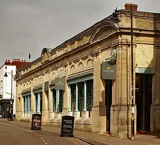 The corn exchange was commissioned to replace an open-sided market hall, in the middle of the Market Place, just to the south of the Clock Tower,[2] which dated back to around 1596.[3] By the mid-19th century it had become dilapidated and the local merchants wanted a new structure. The site council officials selected was on the east side of the Market Place,[4] close to the location of the market's medieval Wheat Cheping.[5]