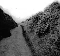Cornborough Cliffs Halt had a platform, but no shelter and was sited on the up side of the line next to the footpath at the waters edge. The line ran through rock cut cuttings up to this point.[6] No sidings or freight facilities were provided.[7][5]