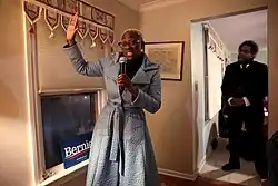 In 2015, West expressed his support for Democratic contender Bernie Sanders during an interview on CNN Tonight. West argued that the Sanders plans to redistribute wealth from Wall Street elites to the poorest members of society would be beneficial for the African-American community.[117] On August 24, 2015, West tweeted, "I endorse Brother @BernieSanders because he is a long-distance runner with integrity in the struggle for justice for over 50 years."[118]