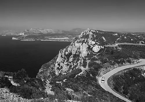 The Corniche des Crêtes (French pronunciation: [kɔʁniʃ de kʁɛt]) is a picturesque and narrow coastal road in Southern France, winding from Cassis to La Ciotat in Bouches-du-Rhône, along the Mediterranean shore.