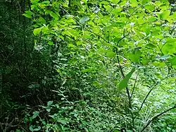 | Foliage and berries of Cornus x arnoldia, a hybrid between C. amomum and C. racemosa. | |