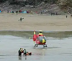 The Cornwall Air Ambulance Trust is a charity that provides a dedicated helicopter emergency medical service (HEMS) for Cornwall and the Isles of Scilly.[5] The service operates a Leonardo AW169 helicopter and two critical care cars that are utilised when the helicopter is unable to fly.[6] Together they attend about 1,100 incidents per year.[6] As of December 2018, the helicopter service had flown over 28,000 missions since 1987.[7]