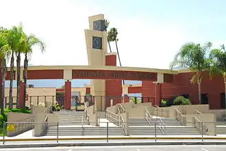 CHS was the first high school in the area, established in 1894 when high school students met in the upper floor of the Corona Grammar school located in what now is called Victoria Park. The second Corona High School was built at 1230 S. Main Street, the current location of Corona Fundamental Intermediate School. This location opened as Corona High School in 1907. By the early twenties, the town out grew this campus and a third Corona High School location was needed. It opened in 1923 and was constructed, in the Mediterranean Revival style, at 815 West Sixth Street. This campus was designed by G. Stanley Wilson, an architect from Riverside, California, who had also designed parts of the Mission Inn. This campus remained in use as a high school until December 1960, when once again, the number of students exceeded its capacity After the high school moved from its third campus, the campus became Corona's Civic Center and City Hall. This third high school building is now listed on the National Register of Historic Places.[3]