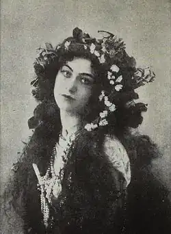Corona Riccardo (c. 1878 – October 15, 1917) was an Italian born American actress who had a brief Broadway stage career before leaving to become a wife and mother. Born in Naples she came to acting in 1894 playing a Mexican girl in a play at the Empire Theatre. Wilson Barrett engaged her for a role in his play The Sign of the Cross which he took on tour of the United States. Riccardo played the role of Ancaria and later played Berenice in the same play. Robert B. Mantell in 1898 who struck by her beauty also cast her in two Shakespeare plays, Romeo and Juliet and Othello. Author Lewis Strang writing in 1899 said Riccardo was the most promising actress in America at the time.[1] Towards the end of 1898 Mantell chose her for another Shakespeare part, Ophelia in Hamlet. Afterwards she was due to join Augustin Daly's Theatre Company but Daly died in 1899. In 1899 she gained her biggest fame by playing Iras in the first stage production of Ben-Hur.