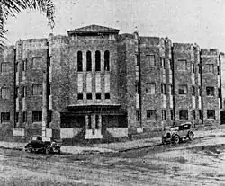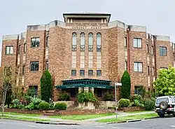 Coronet Flats was completed in November 1933 and was described at the time as having "the architectural dignity of a mansion".[2] Max Strickland, Melbourne businessman and building developer, determined that Brisbane was lacking "up-to-date, well serviced" flats and contracted to have Coronet Flats built. Initially, Strickland planned an extension to be constructed adjacent (at 999 Brunswick Street) that would double the size of the building if the development proved successful. The two buildings would have formed a courtyard between them for a swimming pool, extra garages, and laundries.[3] This is probably where the alternative name "Coronet Court" is derived. This was never realised with Strickland constructing a detached house on the site at a later date. The building was very popular at the time (with four of the nine flats let prior to completion) and remains so today. Strickland sold the building in 1939; since then it has stayed within the O'Connor family.