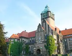 Four presidents ("Rektor") of Dresden University of Technology, Dresden's largest university with approximately 30.000 students, are among the list of members of the fraternity, underlining the deep connection between the Corps and the local alma mater.[4] The connections with the university and the city of Dresden go far back to the fraternity's early beginnings in the late 19th century, with members aspiring to drive developments for the university over the course of history. Two major accomplishments were (1) ensuring the university's recognition by developing the former Technical Institute into the Royal Saxon Technical College of Dresden in the late 1800s and (2) founding of today's Studentenwerk Dresden in the early 1900s as the university's student council.[5][6] Outside of the university's circles, many of the fraternity's members drove developments in the architectural style and design of several of Dresden's buildings such as the "Dresden's Neuer Bahnhof".[4]