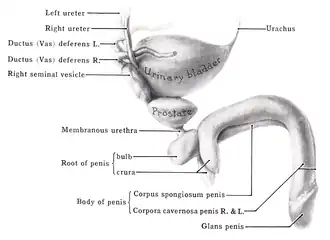 ![]() Lower parts of the genital and urinary tracts in the male | |