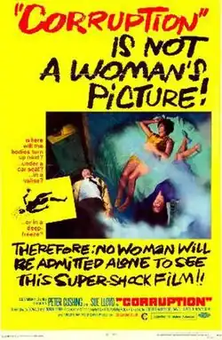 Corruption is a 1968 British horror film directed by Robert Hartford-Davis and starring Peter Cushing, Sue Lloyd, Noel Trevarthen, Kate O'Mara, David Lodge, and Antony Booth.[1] The screenplay is by Derek Ford and Donald Ford.