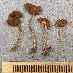 - ^ a b c d e Liimatainen, Kare; Niskanen, Tuula (2020). "1275.Cortinarius subsaniosus Liimat. & Niskanen, sp. nov.". Fungal Diversity. 100: 252–4. doi:10.1007/s13225-020-00439-5. hdl:2437/291202. S2CID 212719058.