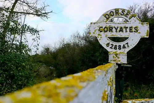 Coryates Halt was a small railway station on the Abbotsbury branch railway in the west of the English county of Dorset. It consisted of a single platform and GWR pagoda shelter. Opened on 1 May 1906, it was sited next to an overbridge carrying a lane to a dairy and the villages of Coryates and Shilvinghampton. Part of a scheme that saw several halts opened on the GWR and other railways to counter road competition, it was served by Railmotors, carriages equipped with driving ends and their own small steam engine.