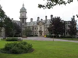 The hospital was built by Frederick Bligh Bond in a Queen Anne style between 1905 and 1907, as a memorial to Handel Cossham, a former MP and Mayor of Bath who died in 1890.[3] Sited on Lodge Hill, the clock tower is the highest point in Bristol and can be seen for miles around.[4] It has been designated by English Heritage as a grade II listed building.[5] Major renovation work was carried out at the hospital, finishing in 2012.[6][7][8]