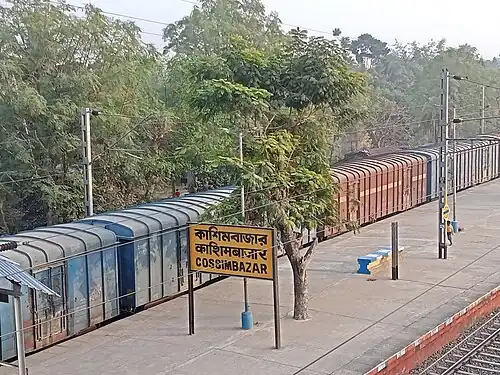 Cossimbazar is a railway station of the Sealdah-Lalgola line in the Eastern Railway zone of Indian Railways. The station is situated at Cossimbazar in northern part of Baharampur in Murshidabad district in the Indian state of West Bengal. It serves northern part of Baharampur.[1] Distance between Sealdah and Cossimbazar is 189 km (118 mi).[2]
