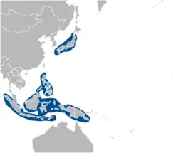 Discovered in 1993 off the coast of the Japanese island Kuroshima, Costasiella kuroshimae have been found in the waters near Japan, the Philippines, and Indonesia. They live in tropical climates.[3] The type locality is Kuroshima, Taketomi, Okinawa, Ryukyu Islands.[4]