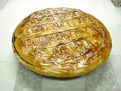Costrada is a typical Galician food from Pontedeume. There is a tradition that the recipe originated with a community of monks from Italy, perhaps belonging to the order of Saint Augustine, who brought the refectory of the monastery of Caaveiro in the 12th century. The use of this dish decreased greatly in the 20th century because of the cost of production.
