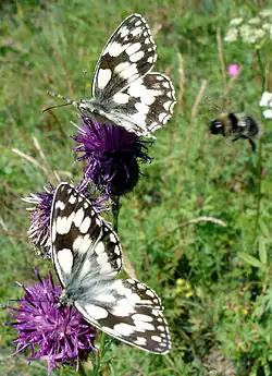 A relatively large number of species of dragonfly and damselfly are recorded, as well as good populations of southern aeshna, common sympetrum and common blue damselfly. The emperor dragonfly visits occasionally. Patches of nettle and thistle attract many butterflies and teasel attracts brimstones and encourages goldfinches.[3]