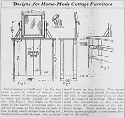 These pieces primarily came in the form of "suites", that is, coordinating sets of furniture consisting of a double bed, a washstand, a dresser or vanity with an attached mirror, a small table, some coordinating chairs, and sometimes a chifforobe or wardrobe.