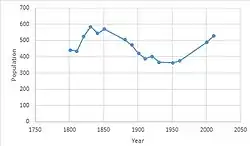 In 2005 its population was 510[1] and according to the 2011 census, the total population had increased by 16 to 526.[4]