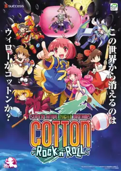 Cotton Fantasy: Superlative Night Dreams[a] is a scrolling shooter video game originally released in Japanese arcades in 2021 and in global arcades in February 2022. It was ported to Nintendo Switch and PlayStation 4. A PC version was later released under the original Rock 'n' Roll title. The sixth installment in the Cotton franchise, it is a follow-up to Rainbow Cotton and the first main entry of the series in over 20 years. In the game, players assume the role of young witch Cotton or any of the six additional characters, each one having their own gameplay style, on a quest to defeat enemies and bosses to retrieve "Willow" candy for Fairyland from Tacoot, Game's Antagonist. The arcade release used the ALL.Net P-ras MULTI Ver.3 hardware in Japan and exA-Arcadia outside of Japan.