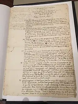 In 1693 Mather also began work on a grand intellectual project that he titled Biblia Americana, which sought to provide a commentary and interpretation of the Christian Bible in light of "all of the Learning in the World".[49] Mather, who continued to work on it for many years, sought to incorporate into his reading of Scripture the new scientific knowledge and theories, including geography, heliocentrism, atomism, and Newtonianism. According to Silverman, the project "looks forward to Mather's becoming probably the most influential spokesman in New England for a rationalized, scientized Christianity."[50] Mather could not find a publisher for the Biblia Americana, which remained in manuscript form during his lifetime. It is currently being edited in ten volumes, published by Mohr Siebeck under the direction of Reiner Smolinski and Jan Stievermann. As of 2023, seven of the ten volumes have appeared in print.[51]