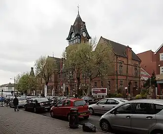 Following significant population growth, largely associated with steam engine manufacturing at Soho Foundry, a local board of health was formed in Handsworth in 1877.[2][3] The board decided to commission a municipal building for its use, to provide Local Board offices, a meeting room for the Board, committee rooms and a large public room, 'together with stables, cart and implement sheds, and other requisite accommodation'.[4] The site selected was on the north side of Soho Road.[5]