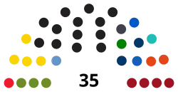 The council is elected for five-year terms. Its seats are assigned proportionally to each party and list. The last election was held on 22 October 2023.