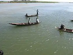 Water transportation is a vital means of communication in Bangladesh, a floodplain with approximately 405 rivers[1] and numerous oxbow lakes (locally known as haor). Traditional country boats remain popular for providing low-cost, convenient transport across this extensive inland waterway network. Approximately 150 types of boats still populate the floodplain, varying in design, size, and construction materials.[2]