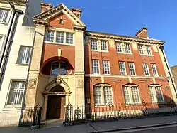 Following the implementation of the Local Government Act 1888, which established county councils in every county, it became necessary to find facilities for Essex County Council.[2] Given the difficulty of travelling by rail to Chelmsford from many parts of the county, the council decided to hold only its quarterly meetings at the Shire Hall there, with other committees and meetings being held in London, which was more accessible to the majority of councillors.[3][4] The council subsequently established two small offices on the north side of King Edward's Street.[5]