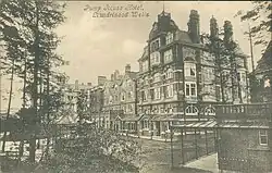 - ^ The Pump House Hotel had its origins in an early 18th century farmhouse known as Bach y Craig; after a saline and a sulphur spring was found on the farm in 1736, the medicinal properties of the spring were publicised by a German physician, Diederick Linden, in 1756.[5] After a change of ownership in 1868, the aging hotel was replaced by a modern structure designed by Shepherd & Sons of Cardiff which was completed in 1888.[6] It was used as a military hospital during the Second World War and then became a teacher training college in 1947 before being converted for use as a school for deaf people in 1950 and then falling vacant in 1971.[5]